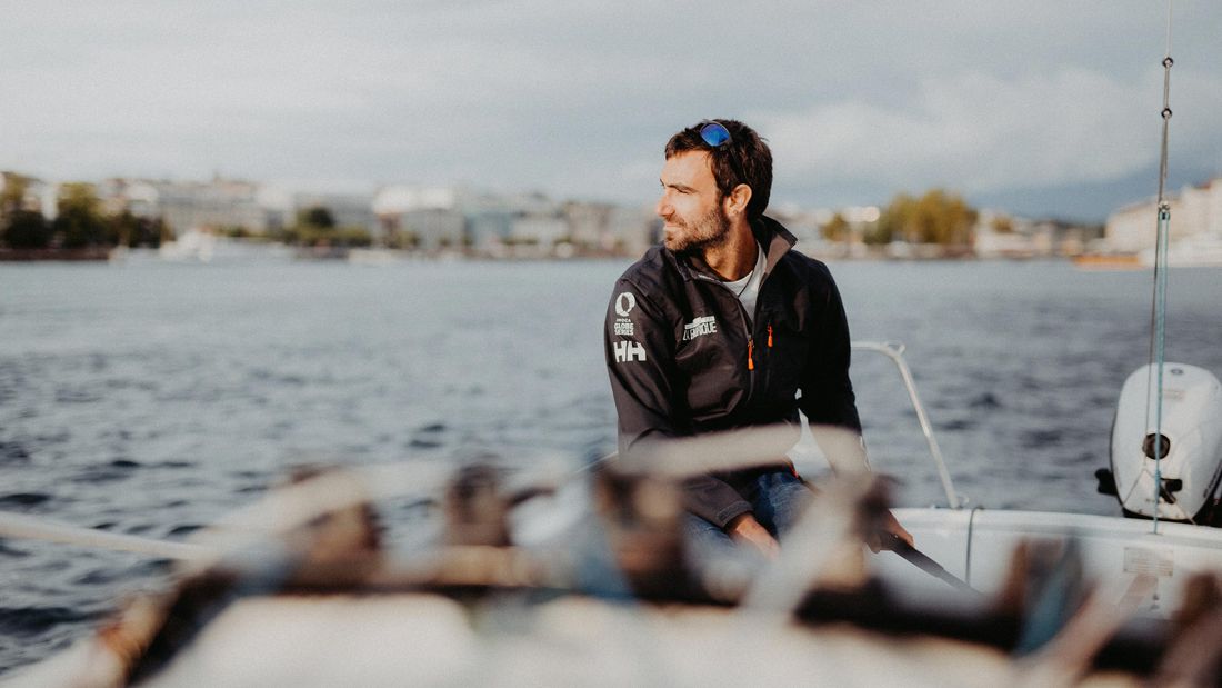 On a mystical autumn morning, we take Alan’s boat out of Port-Noir Harbour in Geneva, and after the professional sailor makes a few precise hand movements, the white sails fill with wind. What already feels turbulent to us is not comparable with the adventures that Alan experiences on the deep blue oceans. He sails alone for months in waves over eight metres high and stormy seas in order to sail around the world without stopping. On placid Lake Geneva, Alan is now completely relaxed. Here there is nothing to fear, such as floating containers that could collide with his boat.